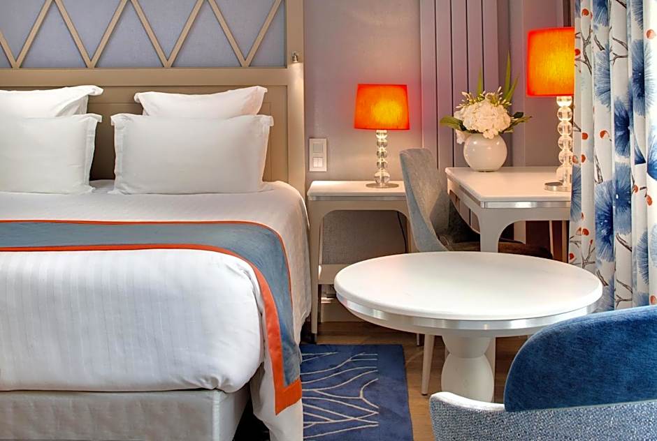 This spacious suite is stylishly decorated and offers a separate seating area and a large marble bathroom. Most suites overlook the interior courtyard.